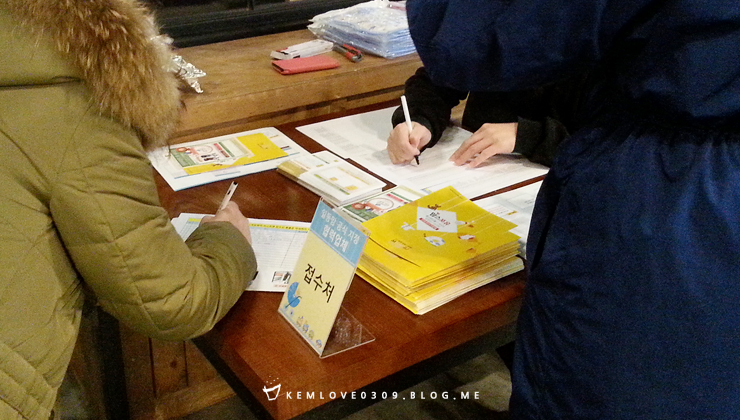 ¾ÈÂÊ¿¡ ÀÖ´Â Á¢¼öó¿¡¼ Âü¿©ÀÚ Ã¼Å©¸¦ ÇÏ°í ³ª´²ÁÖ´Â À¯Àι°À» ¹Þ¾Æµé°í DȦ·Î ÀÔÀåÇß½À´Ï´Ù.